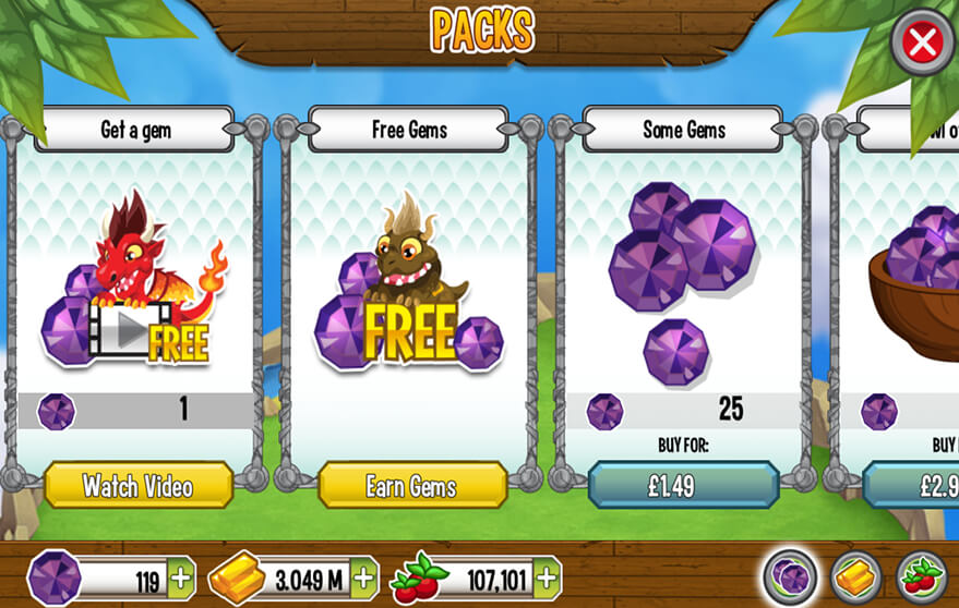 2) Build a Dragon Stadium and use your dragons to fight in it. Each tournament you win gives you 2 gems and some gold.